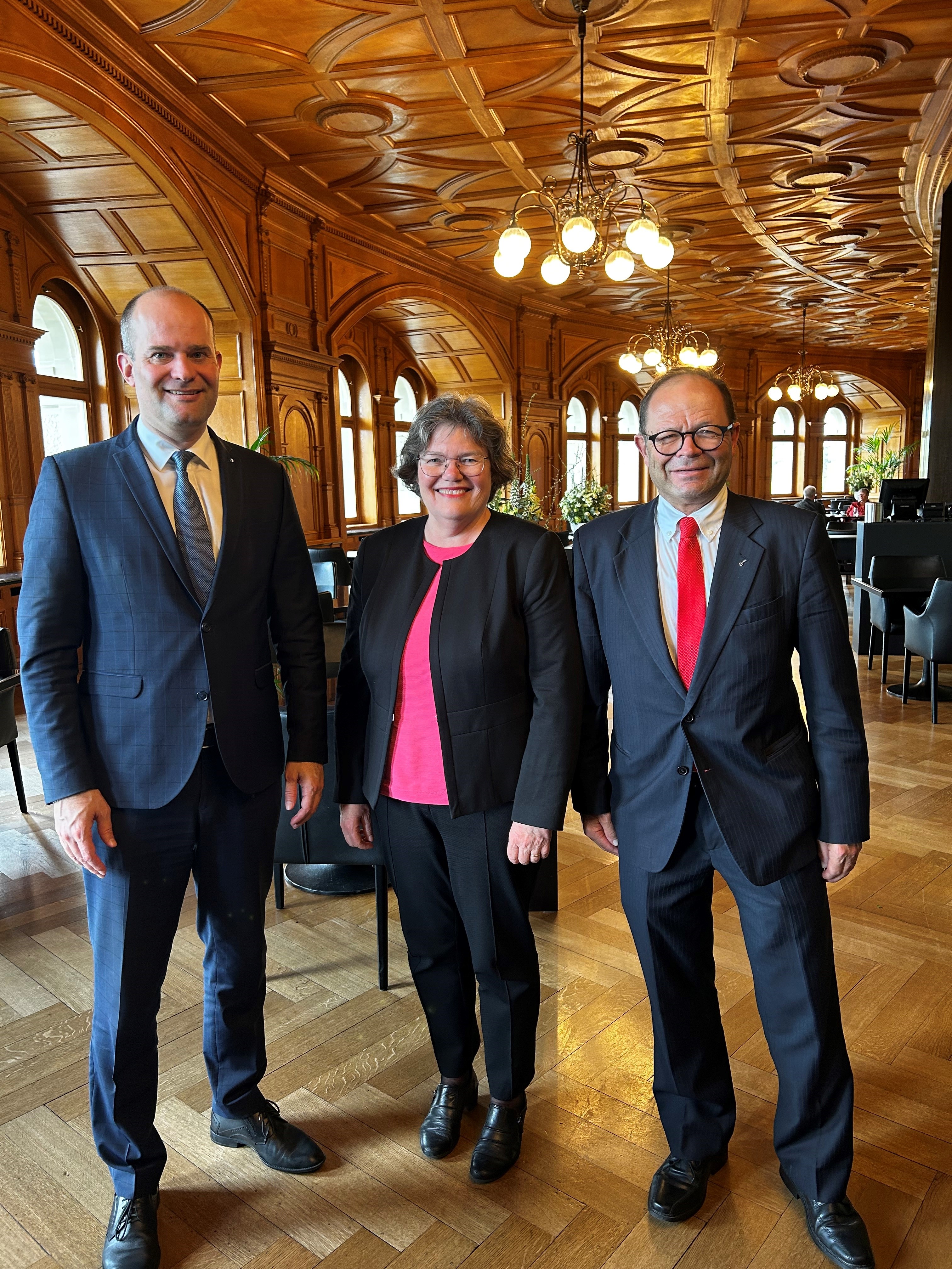 Am 10. Dezember 2024 überreichten die Kantone Luzern, Obwalden und Nidwalden drei gleichlautende Standesinitiativen für den Durchgangsbahnhof Luzern (vgl. Medienmitteilung vom 10. Dezember 2024). Die zuständige Regierungsrätin und Regierungsräte Therese Rotzer (NW), Fabian Peter (LU) und Josef Hess (OW) hatten gestern Montag Gelegenheit, das Zentralschweizer Schlüsselprojekt in der ständerätlichen Kommission für Verkehr und Fernmeldewesen (KVF-S) vorzustellen und zu vertreten. «Der gemeinsame Auftritt ist ein wichtiges Zeichen, dass die ganze Zentralschweiz parteiübergreifend und geeint hinter dem Durchgangsbahnhof Luzern steht», betont Regierungsrat Josef Hess. Im Namen der Region zeigten die Regierungsräte den Nutzen und die Dringlichkeit des Durchgangsbahnhofs Luzern für die regionalen, nationalen und internationalen Bahnverbindungen auf. Zudem betonte die Delegation, dass mit dem Durchgangsbahnhof Luzern ein Projekt vorliegt, das in der Planung bereits sehr weit fortgeschritten ist. Nach erfolgreichem Abschluss des Vorprojekts arbeitet die SBB im Auftrag des Bundesamts für Verkehr (BAV) seit Ende 2024 intensiv am Bauprojekt für den Tiefbahnhof mit Dreilindentunnel als erste Etappe DBL. Das heisst konkret: Bis zum Beschluss der nächsten Botschaft zum Ausbau der Bahninfrastruktur in der Bundesversammlung wird ein baureifes Projekt vorliegen.