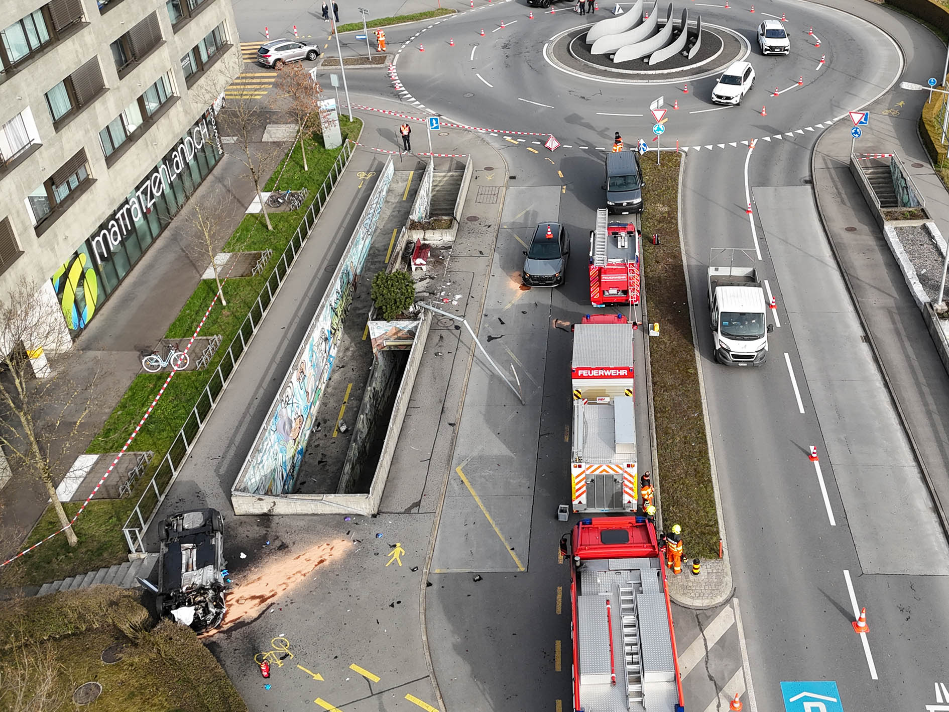 Ein 27-jähriger Lenker fuhr mit einem Personenwagen auf der Stansstaderstrasse von Stansstad herkommend in Fahrtrichtung Stans Dorf. Auf Höhe des Kreisels Länderpark kam es zu einer Streifkollision mit einem ebenfalls in Fahrtrichtung Stans Dorf fahrenden Personenwagen. In der Folge kollidierte der Fahrzeuglenker mit dem Bordstein und flog über die dortige Unterführung und kam auf dem Dach nach der Unterführung zum Stillstand. Dabei wurde nebst dem Fahrzeuglenker ein sich auf dem Trottoir befindliches 7-jähriges Kind schwer verletzt.