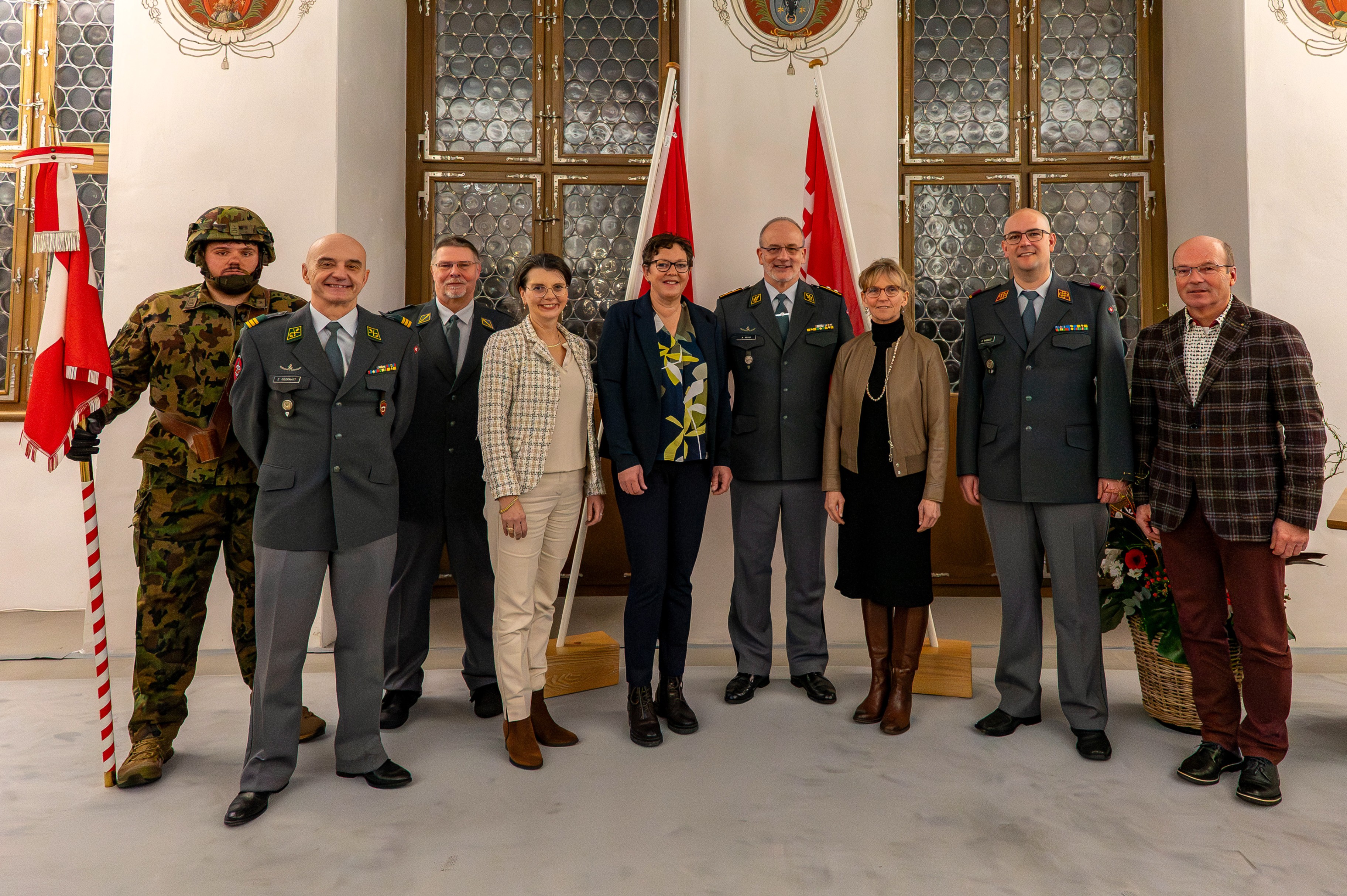 Die Feier bot Gelegenheit, innezuhalten und auf Geleistetes zurückzublicken. In ihren Ansprachen unterstrichen Landratspräsidentin Erika Liem Gander, Justiz- und Sicherheitsdirektorin Karin Kayser-Frutschi sowie der Kommandant der Territorialdivision 2, Divisionär Alexander Kohli, ihre hohe Anerkennung gegenüber den Entlassenen und Beförderten. Sie dankten für den Einsatz, ihre Loyalität und ihre Bereitschaft, über viele Jahre Verantwortung für andere zu übernehmen – oft zusätzlich zu Beruf, Familie und gesellschaftlichem Engagement.