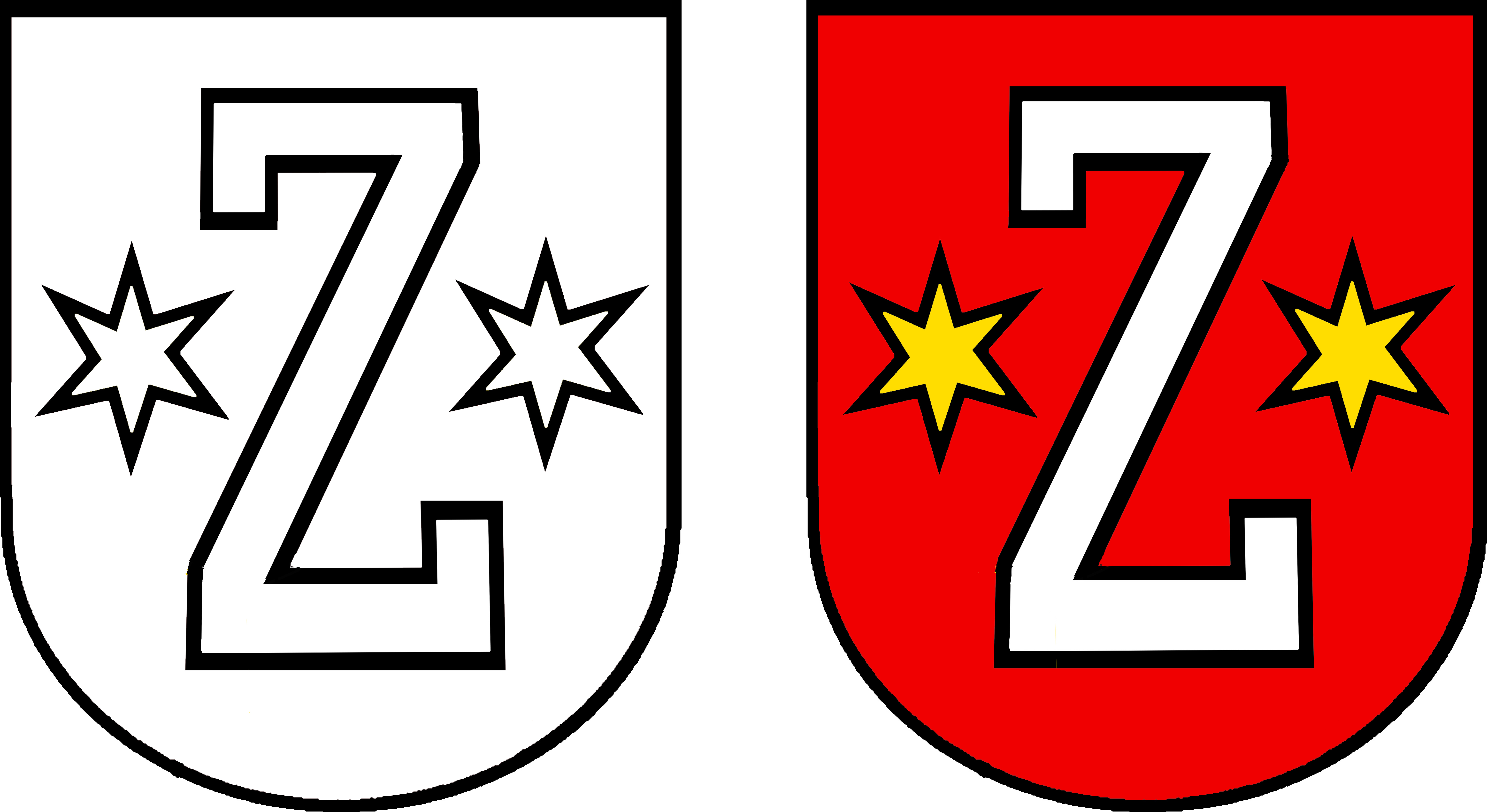 In Rot ein silbernes Z, beseitet von zwei sechsstrahligen goldenen Sternen.