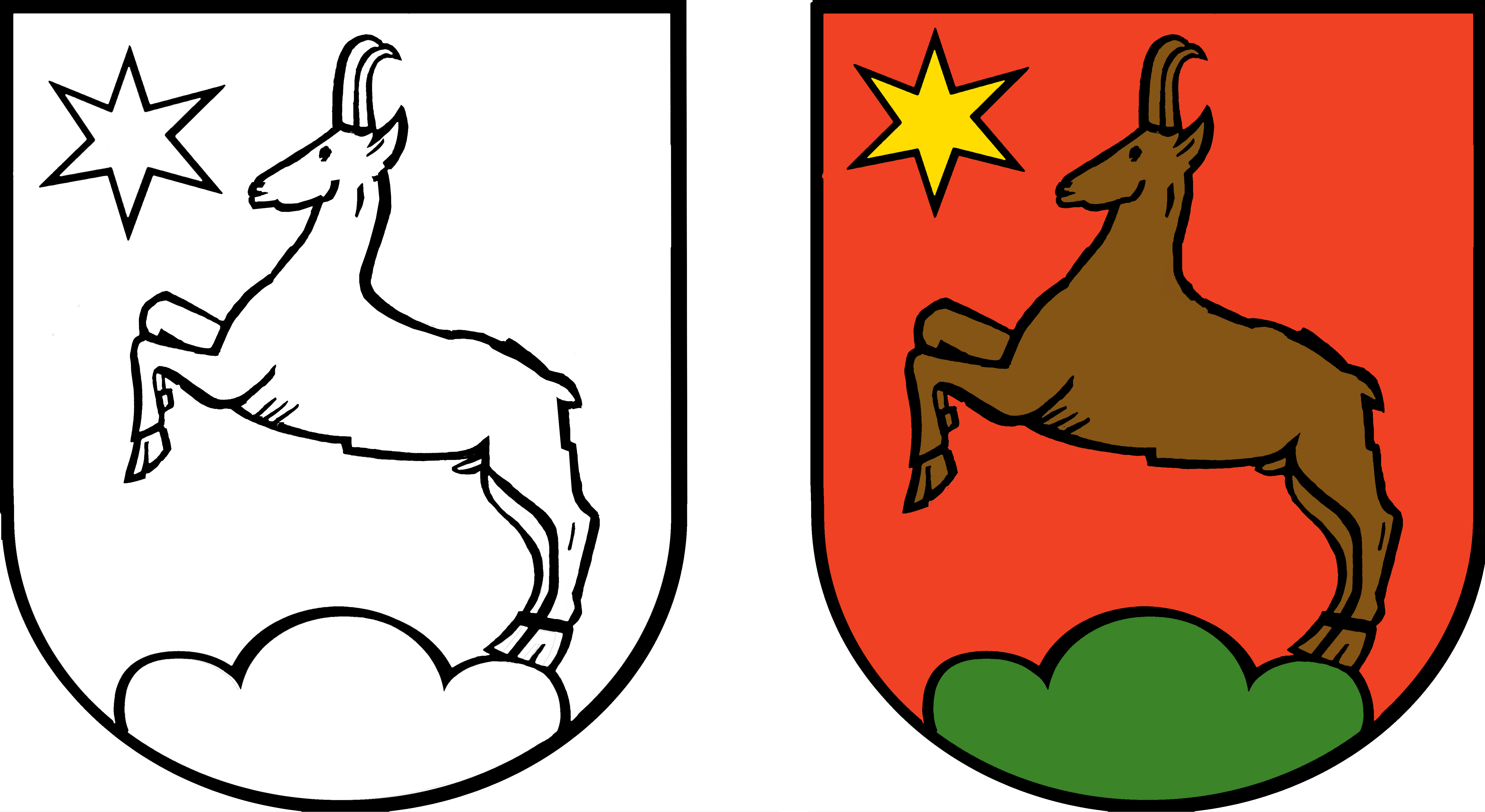 In Rot auf grünem Dreiberg ein springender natürlicher Gemsbock, im rechten Obereck ein sechsstrahliger goldener Stern.