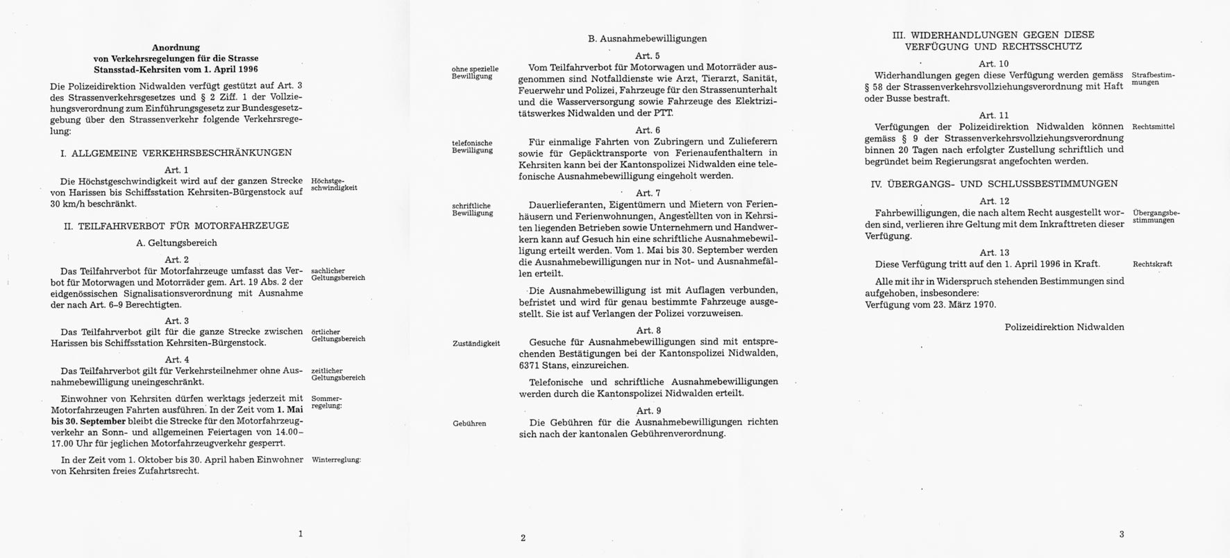 KehrsitenstrasseAusnahmebewilligungen für berechtigte Personen werden von der Kantonspolizei NW erteilt.